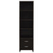 Overhaul your living space with this cappuccino entertainment wall. This wall is constructed with four pieces, including one TV console, two media towers and one bridge. A total of 16 shelving units are available to store your media and decor. Meanwhile, five concealed drawers enhance the organization of your living space. This transitional entertainment wall is suitable for all styles of living spaces with its clean and modern design.
