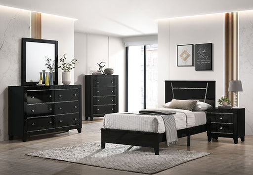 FOA EastDarkly finished wood on this mirror sets the tone for any bedroom set. Solid plank construction ensures durability.