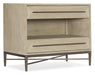 With an open and airy profile, the Cascade Two-Drawer Nightstand offers chic style and a calming neutral color palette to your space. Crafted of Oak Veneers, it is finished in Terrain, a soft taupe color made casual and tactile by dry brushing. The finishing touches are a champagne-colored bar pull and a center open storage area. Functional features include a USB outlet and a cord clip on the back.
