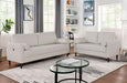 Chair Product Dimension: 39 7/8"L X 31 3/8"W X 33 1/2"H (SEAT HT: 18 7/8", SEAT DP: 2 1/2") This leatherette chair will bring you back to the long gone era of cigars and wine. Here we find elements such as loose pillow backs, a pair of bolter pillows, and a tufted onepiece seat cushion. The arms are trimmed with welt that innocuously matches the color of the body. The simple, wooden legs are tapered and finished in warm walnut. Exuding an unmistakable midcentury modern vibe, this retromodern piece reminds us of a few decades back, with colors that explicitly evoke the turn of the late 60s.