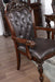 The most festive occasions deserve the most stylish furniture! Finished in brown cherry, the set's rich details include decorative faux wood carvings on the legs reminiscent of baroque styling. The matching chairs feature button-tufted leathered in espresso.
