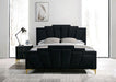 FLORIZEL Night Stand, Black, 22 1/4"W X 14 3/8"D X 24 1/4"H, 35.3lbs. Coming in a bold color, this night stand stays true to its glam roots. Between the classy, upholstered soft flannelette and the gold-coated steel legs, it is designed for the sophisticated urbanite and their modern city oasis.