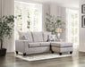 With straight lines and a simple silhouette, this sectional comes off as stylishly relaxed. Wide box cushion seats are paired with removable back pillows all with welt-trimmed edges and upholstered in soft chenille. The colors add to the casual vibe - a neutral beige hue offers a solid foundation for the decorative pillows with abstract designs that work with a wide variety of home decor. The chaise is a movable ottoman that can be positioned on the left or on the right.