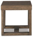 This designer end table makes it hip to be square. Bold, blocky profile is enriched with plank-effect styling and a textured grayish brown finish for a look that’s cool and contemporary and a vibe that’s warm and inviting.