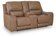 Live and lounge luxuriously. This power reclining loveseat brings an ultra-stylish flair to your home’s central hub. Its seating area is wrapped in top-grain leather in a rich caramel coloration, giving you a trend-right look made all the better with high-quality materials. And with the simple push of a button, you can recline or adjust the headrests to find your ideal comfort position.