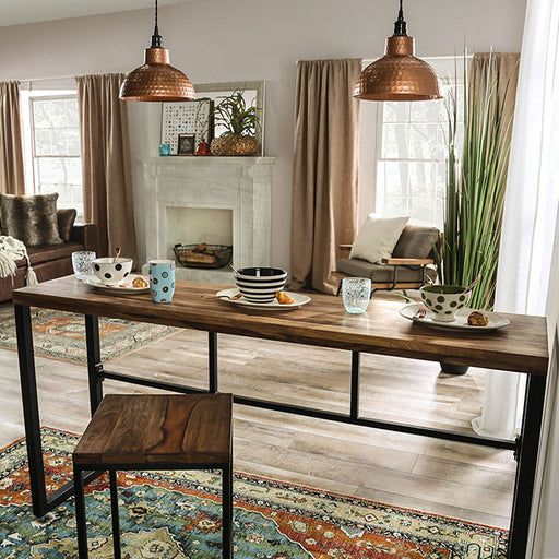 FOA EastA minimalistic take on the industrial trend, this bar table is narrow and feature footrests on one side of its long edge and a pair of slender squa...