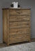 Vaughan Bassett Dovetail 5-Drawer Chest in Natural 752-115. Vaughan Bassett has developed a patent-pending process that allows them to accelerate how wood ages. We have kept the splits; knots; cracks; and the bold grain pattern found in Oak lumber to create this reclaimed look in this beautiful and unique bedroom.