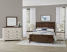 Vaughan Bassett Lancaster County 8 Drawer Dresser in Dove Grey 817-003. Eight drawer master dresser features a generously proportioned tops in a Dark Walnut finish and Dove Grey finish over the base. The custom-designed drawer hardware includes cup pulls and knobs with an antiqued bronze finish that complement the dresser.