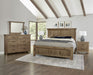 Vaughan Bassett Yellowstone American Dovetail Mirror in Chestnut Natural 782-448. Substantial solid white oak mirror with all the splits; cracks; knot holes – all of the aging and refining that can only be provided by Mother Nature herself. American Dovetail design feature on top corners. Vaughan Bassett has developed a patent-pending process that allows them to accelerate how wood ages. We have kept the splits; knots; cracks; and the bold grain pattern found in Oak lumber to create this reclaimed look in this beautiful and unique bedroom.